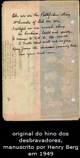 O hino dos Desbravadores foi oficializado em 1952 e a letra que temos em português foi traduzida e adaptada por Isolina Waldvogel.